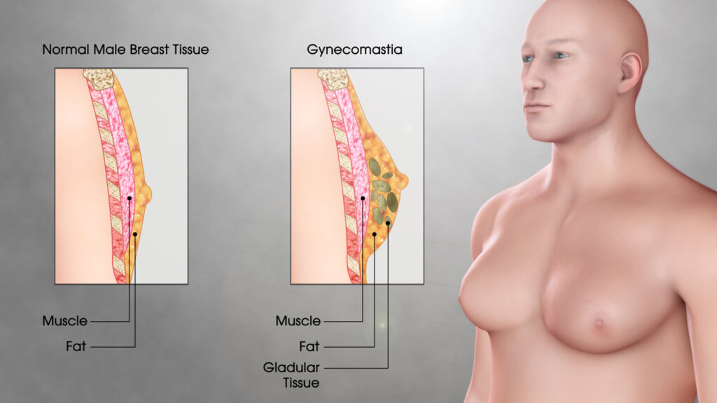 Gynecomastia is a condition characterized by the enlargement of breast tissue in males. It results in the appearance of breasts that may resemble those seen in females. This condition can affect one or both breasts and can occur at any age, from infancy to adulthood. Here’s a brief explanation of gynecomastia, its causes, symptoms, and available treatment options
